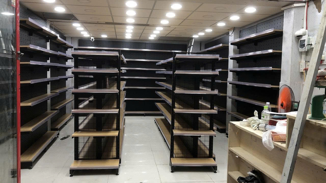 Kệ khung sắt mâm gỗ lưng tôn lỗ